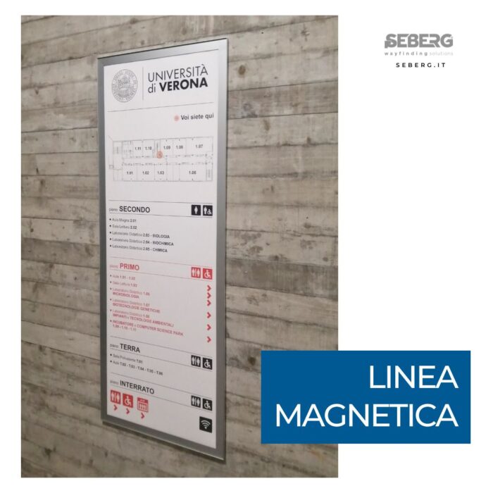 Un campus universitario non è solo un luogo: è un ecosistema fatto di aule, laboratori, biblioteche, spazi comuni e percorsi complessi.Noi di Seberg lo sappiamo bene e per questo progettiamo soluzioni di wayfinding pensate su misura per ogni struttura.Totem informativi per orientarsi con chiarezzaTarghe personalizzate che si integrano con l’identità visiva dell’università