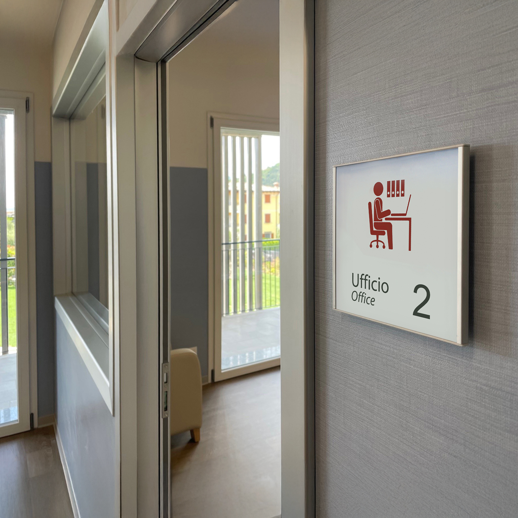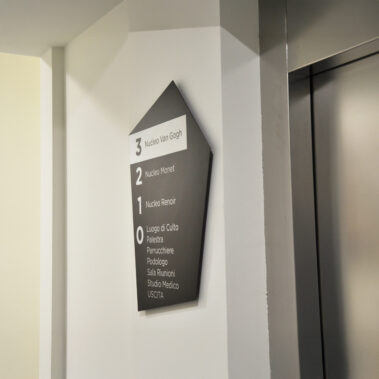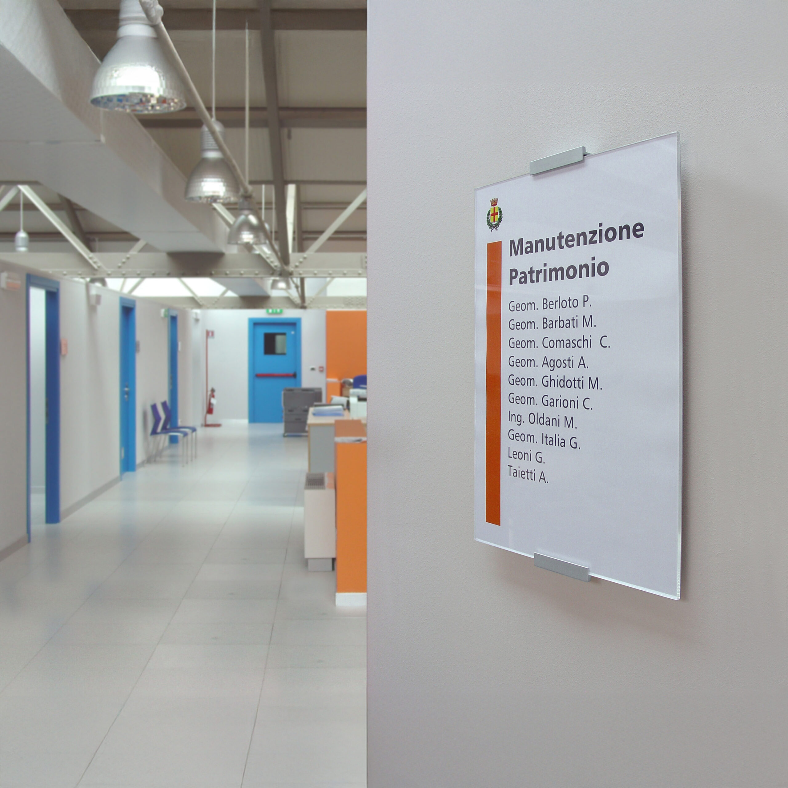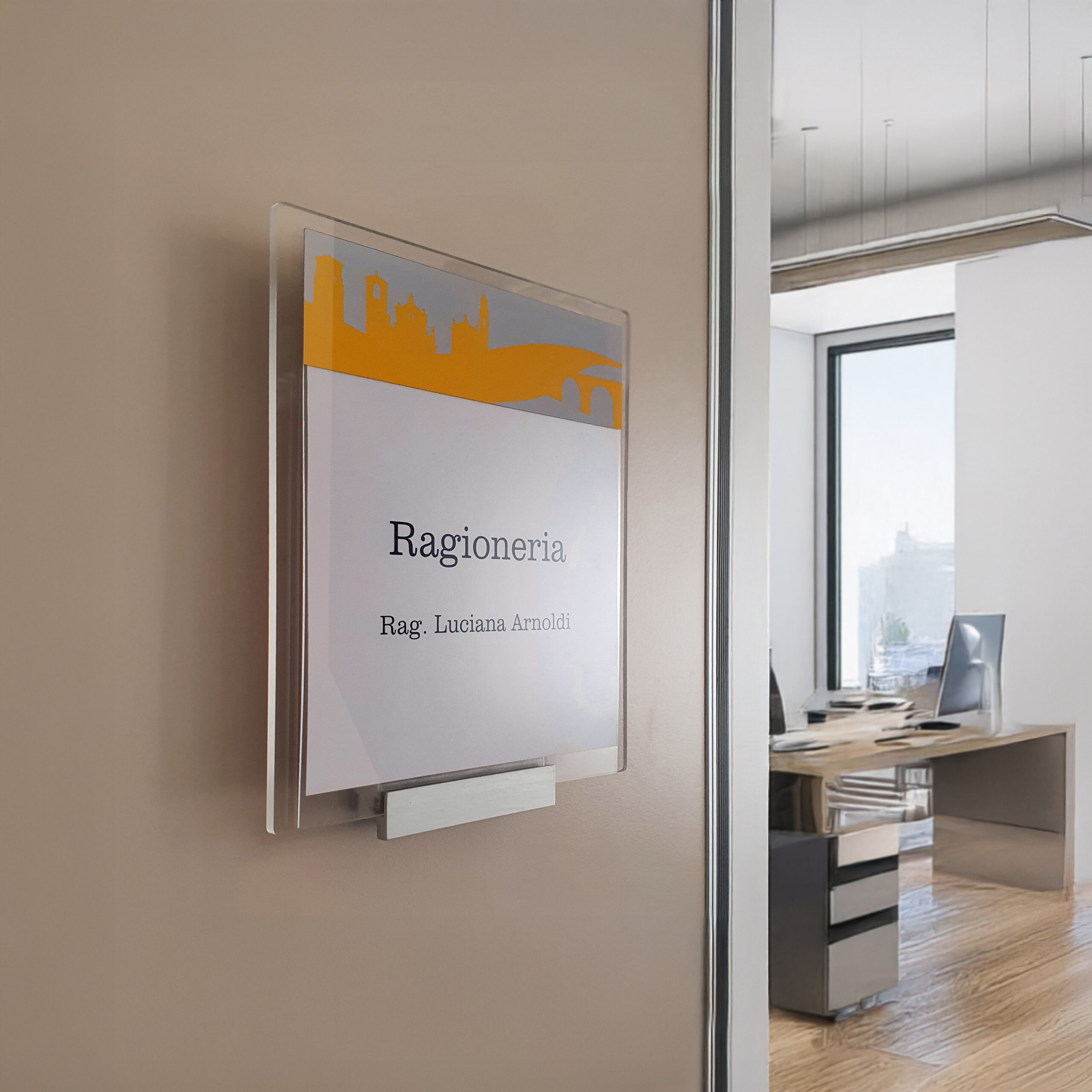 Sofisticata linea di segnaletica caratterizzata da un morsetto rettangolare in alluminio anodizzato, progettato per unire funzionalità e un’estetica minimale. Il design raffinato del morsetto garantisce una presa sicura e discreta, elevando la percezione di qualità del materiale esposto che può essere una lastra di plexiglass, policarbonato, dibond, alluminio, …
