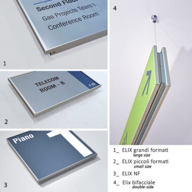 Disponibili in vari formati e idonei all’installazione a parete, a bandiera o a soffitto.