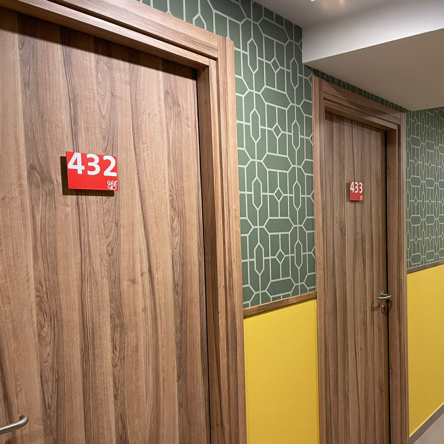 Linea di prodotti caratterizzata da una pannellatura modulare che si presenza distanziata dalla parete (o coppia di pannellature applicate distanziate fra loro) grazie alla presenza di un supporto posteriore in alluminio estruso con mecccanismo di aggancio a scatto su clip a scomparsa che garantisce un’installazione rapida, facilmente ispezionabile e sostituibile.