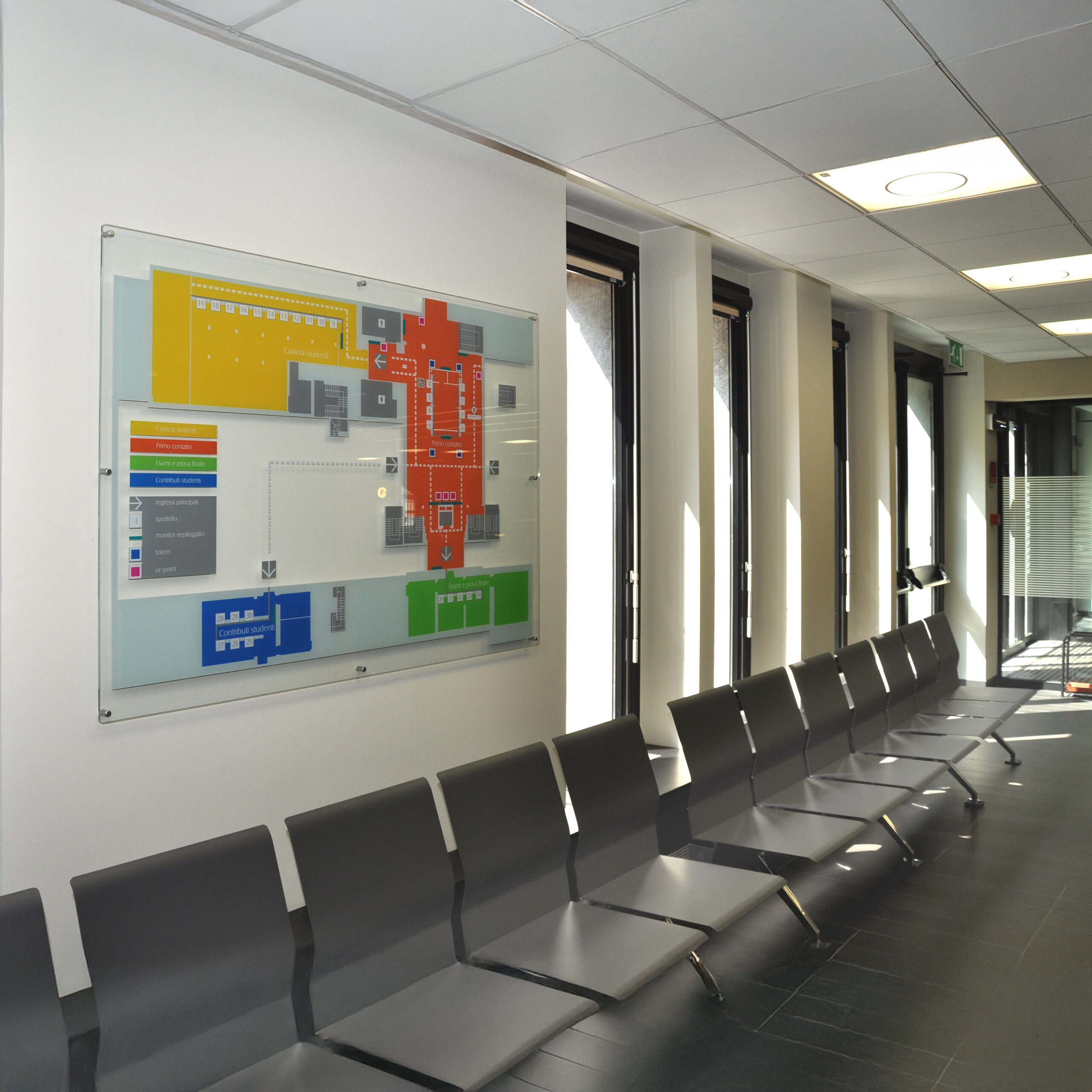 Per una rapida intercambiabilità dei contenuti è possibile utilizzare pannelli suddivisibili in moduli e la versatile gestione in carta.