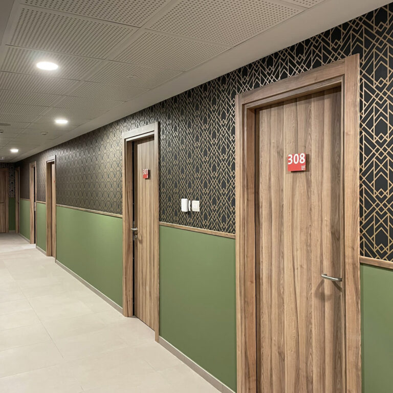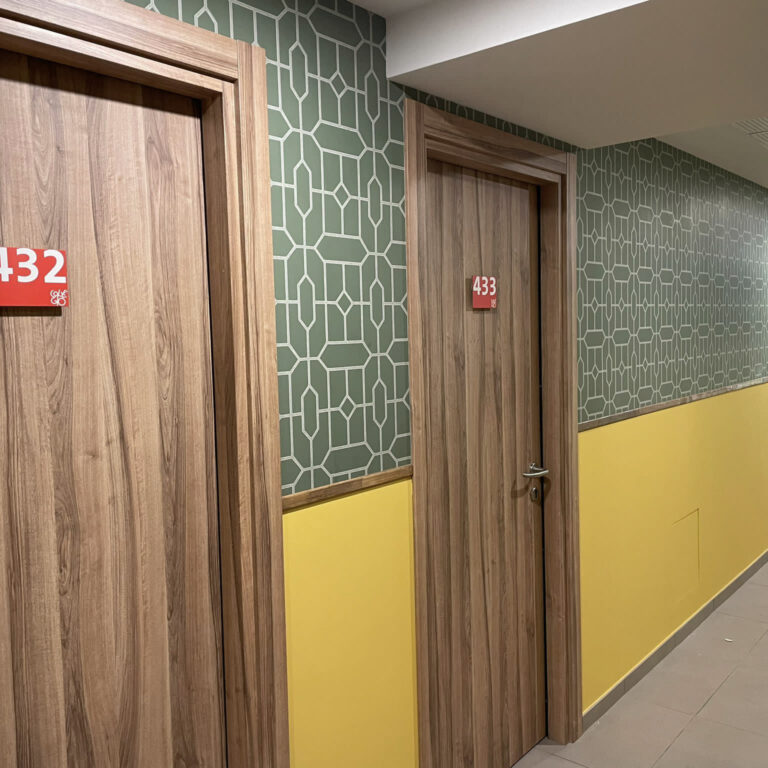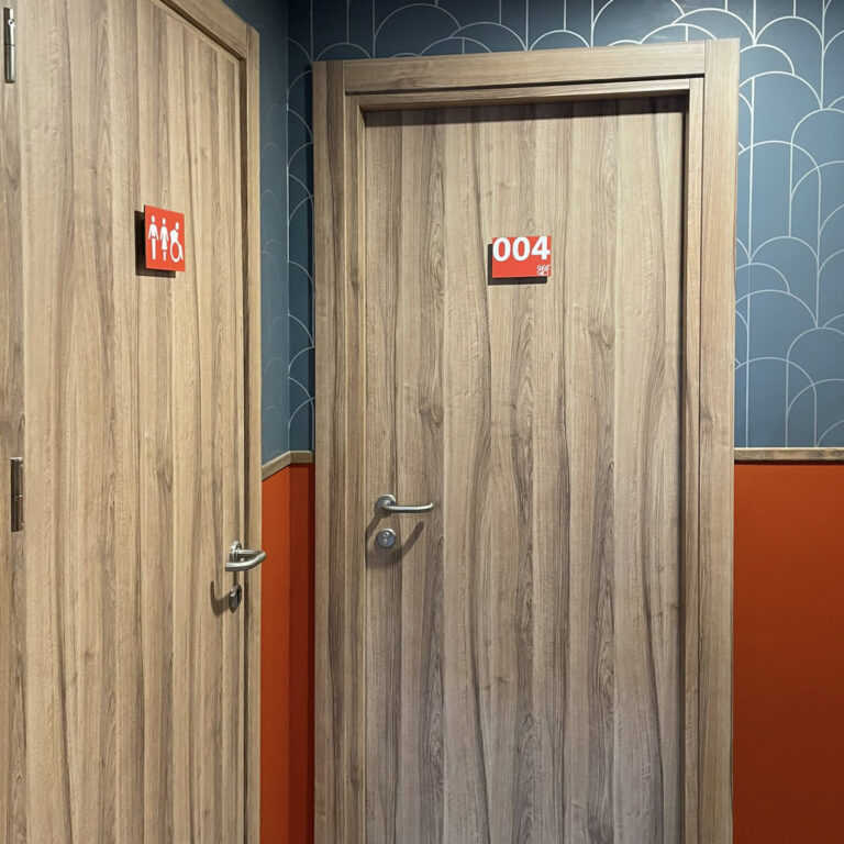 Abbiamo progettato e installato targhe identificative per le stanze, decorazioni sulle vetrate e segnaletica di sicurezza, curando ogni dettaglio per assicurare che la navigazione all’interno delle residenze sia intuitiva e immediata.