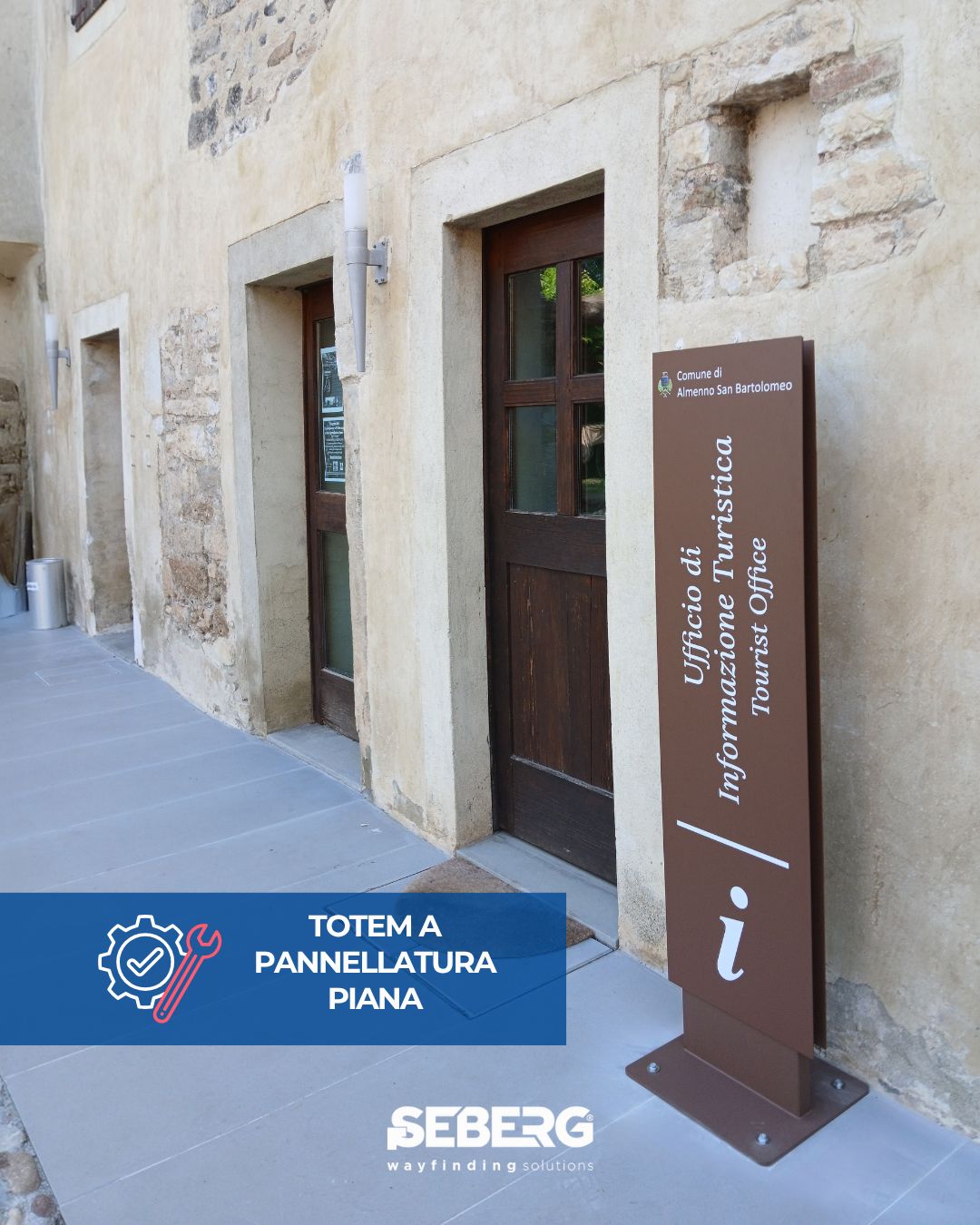 Elegante totem ideale per la segnaletica turistica e per inserimento in contesti storici.